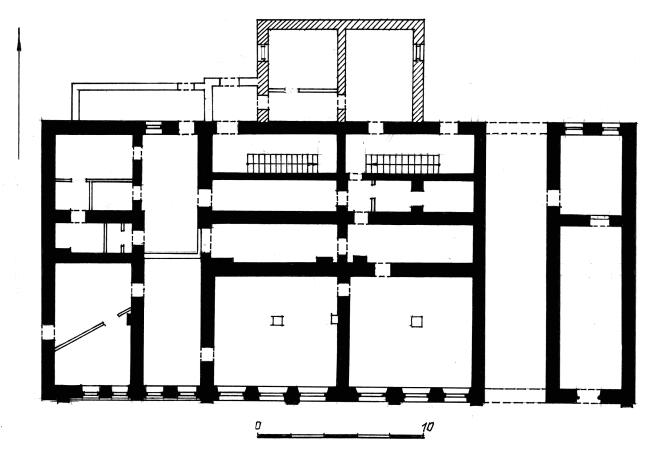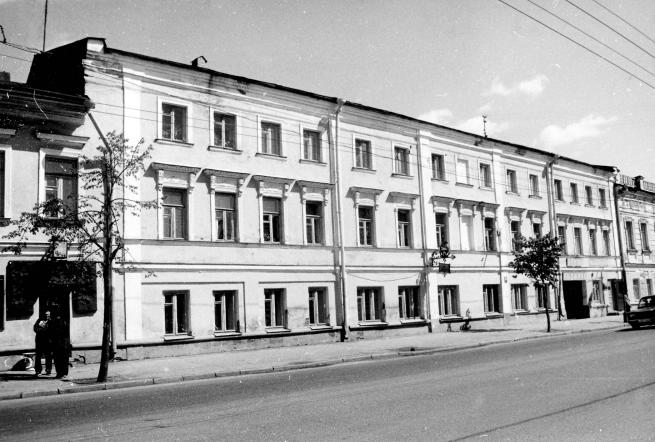 Дом О.Е.Сметанина, кон. XVIII - втор. пол. XIX в.Костромской, р-н/Костромская, обл, д. 13, лит. А Довольно крупный трехэтажный жилой дом в стиле классицизма, включенный в фронт сплошной застройки квартала, возведен в 1792 г. купцом О.Е.Сметаниным. Первоначально это кирпичное оштукатуренное здание, состоявшее из двух "полудомов" (изолированных половин), было двухэтажным. В нем размещался постоялый дом. В 1831 и 1834 гг. обе половины дома были куплены купцом И.В.Маянским, отремонтировавшим здание и пристроившим к его дворовому фасаду службы. В 1847 дом сильно пострадал от пожара, но вскоре был восстановлен с достройкой третьего этажа. После 1868 г. его новым владельцем стал купец К.А.Семенов, при котором в 1887 г. был частично изменен декор уличного фасада. Прямоугольный в плане объем, усложненный ризалитом в центре дворового фасада, завершен двускатной кровлей. Главный фасад с 15 осями прямоугольных окон симметричен относительно центра с ложными проемами. На правом фланге – прямоугольный проем сквозного проезда во двор (аналогичный проезд, позже заложенный, существовал и в левой части дома). Здание имеет невысокий гладкий цоколь, завершенный валиком в основании нижних окон. На фоне окрашенных светлой охрой стен рельефно выступают строгие по характеру беленые детали: трехчастный профилированный пояс под окнами второго этажа, венчающий здание карниз, пилястры, выделяющие на фасаде трехосный центр и четырехосные фланги, наличники окон, в парадном втором этаже украшенные лепниной и завершенные пластичными сандриками на кронштейнах, в более низком третьем – узкие тянутые. Входы в здание расположены в одноэтажных пристройках-тамбурах по обе стороны дворового ризалита. В первом этаже размещались торговые помещения, в верхних узкий коридор в каждой из половин отделял от лестничной клетки и маленьких служебных помещений, сосредоточенных в дворовой части дома, три парадные комнаты, выходящие окнами на уличный фасад и связанные во втором этаже анфиладой. Лит.: Памятники архитектуры Костромской области. Вып. 1. Ч. 1. Кострома, 1996. С. 273-274. ГАКО. Ф. 207. Оп. 1. Д. 2168. Л. 1, 4-5, 6 об; Ф. 497. Оп. 2. Д. 38. Л. 10 (не сохр.); Д. 353. Л. 50 (сохр. частично); Д. 403. Л. 35 об. (не сохр.); Д. 404. Л. 59 об.; Д. 449. Л. 11 об. (сохр. частично); Д. 682. Л. 101 об.-102 (не сохр.); Д. 683. Л. 42-42 об. (не сохр.); Д. 1137. Л. 22 об. (не сохр.); Д. 1279. Л. 49-49 об. (не сохр.); Д. 1325. Л. 69 об. (не сохр.); Д. 2414. Л. 317 об. (не сохр.); Ф. Р. 513 (Е.В. Кудряшов). Оп. 1. Д. 217, 228. Архив Свода памятников ДКН. Е.В.Кудряшов. Архитектурный ансамбль ул. Советской. С. 69-74. |